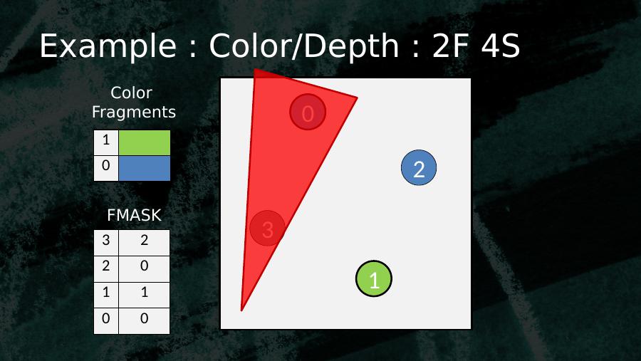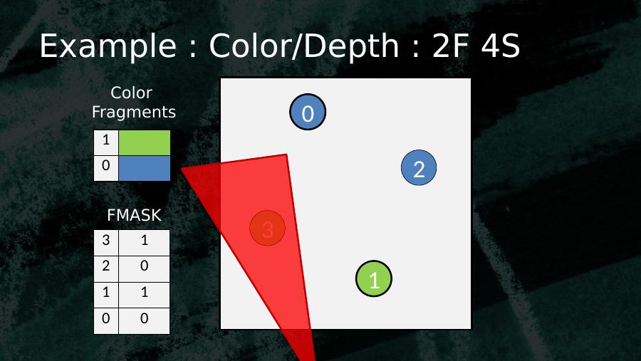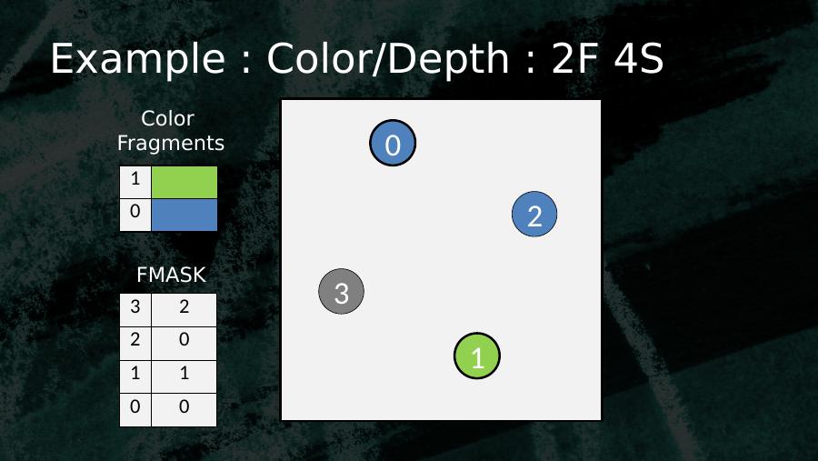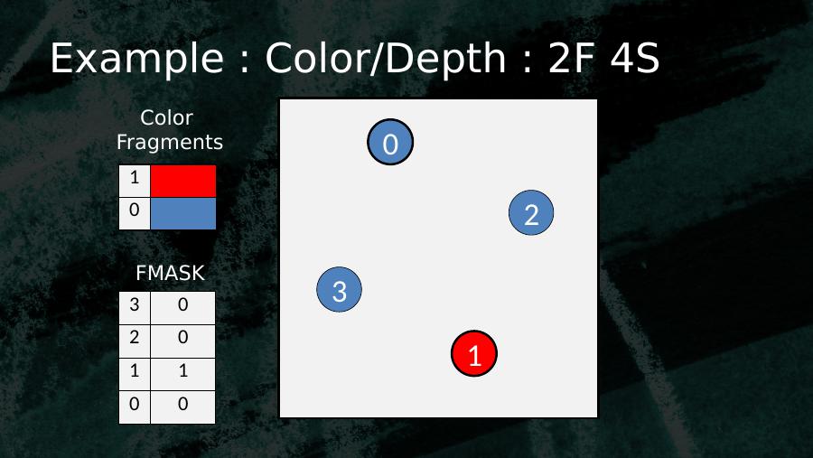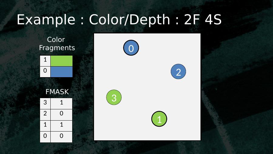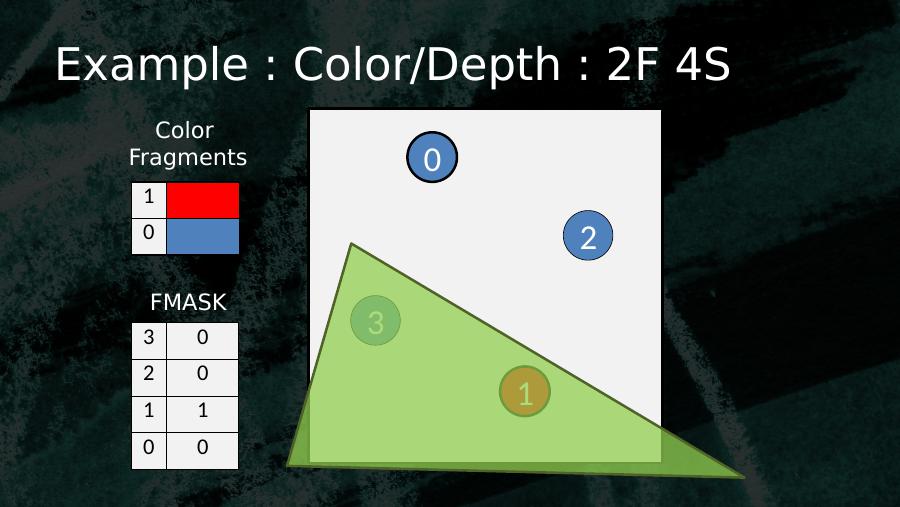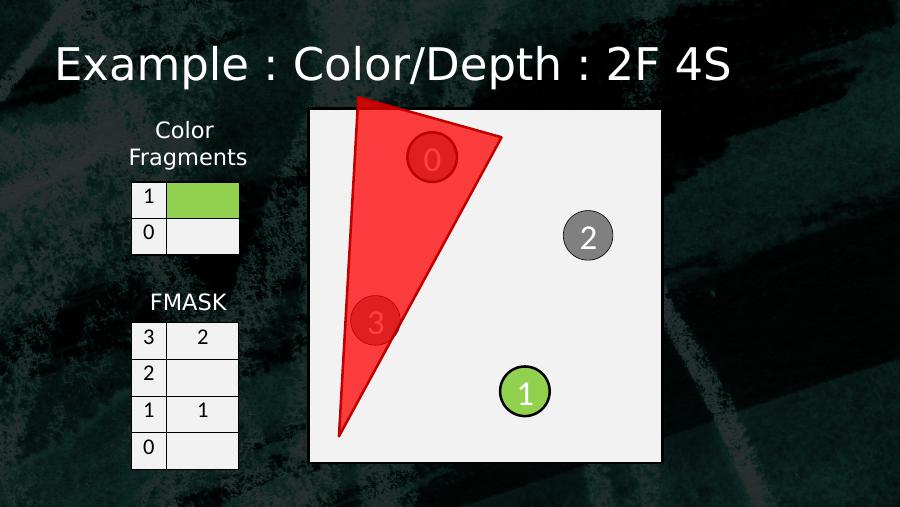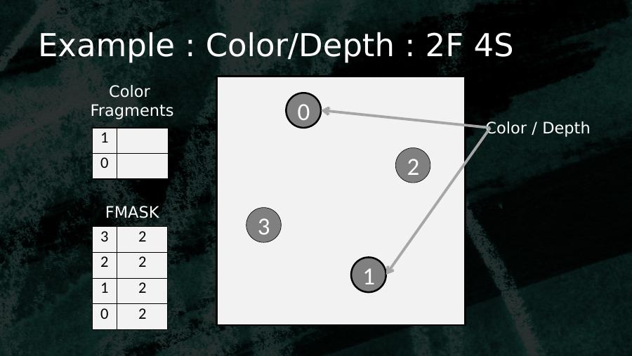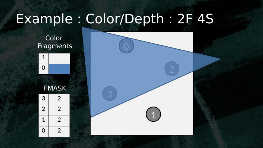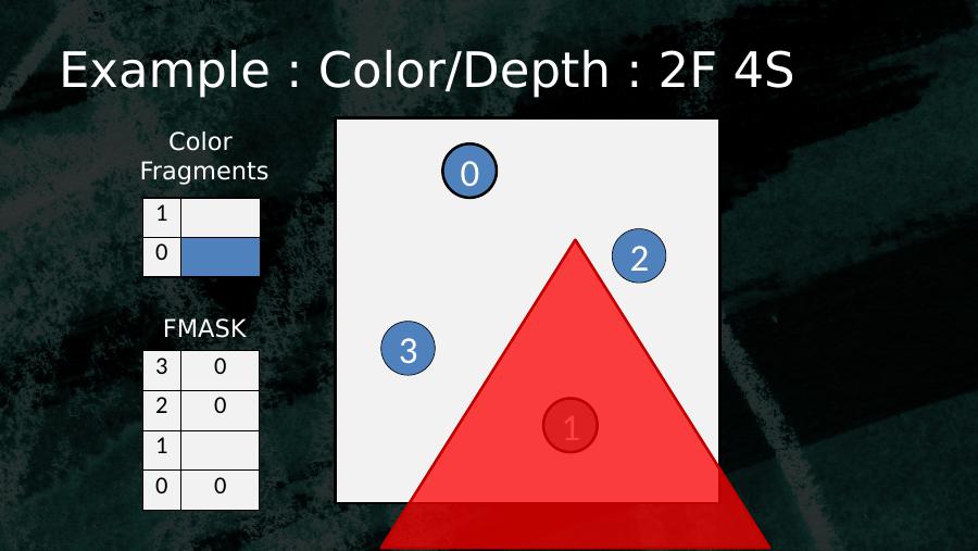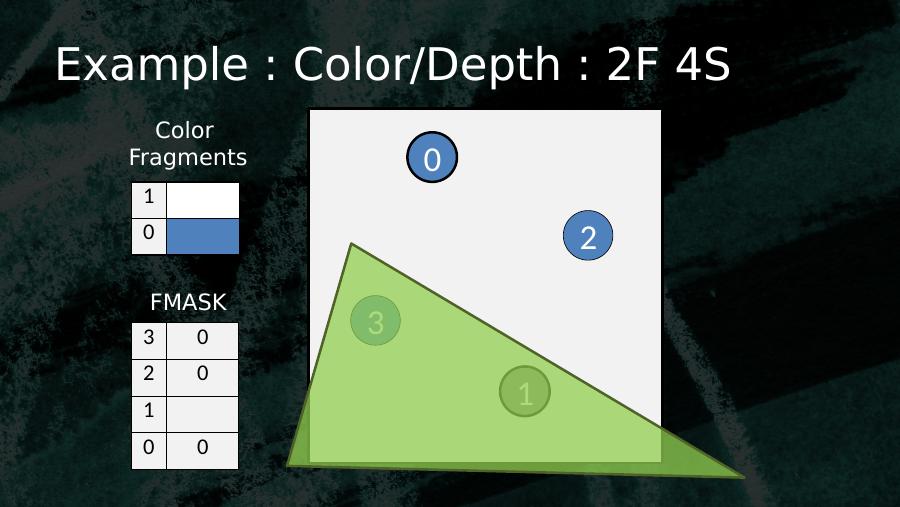 0123103 02 01 10 0Color FragmentsFMASKExample : Color/Depth : 2F 4S