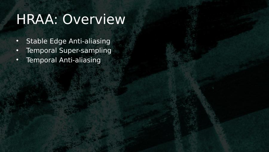 HRAA: Overview• Stable Edge Anti-aliasing• Temporal Super-sampling• Temporal Anti-aliasing