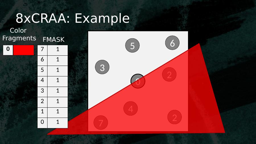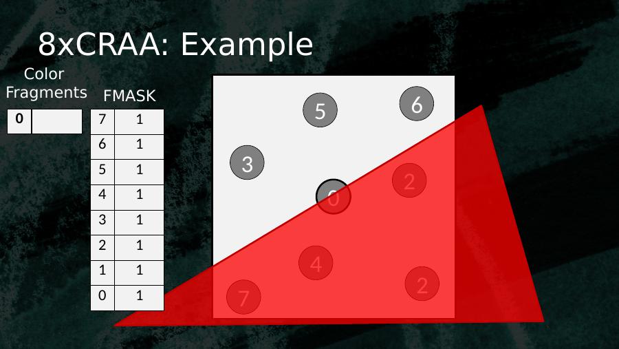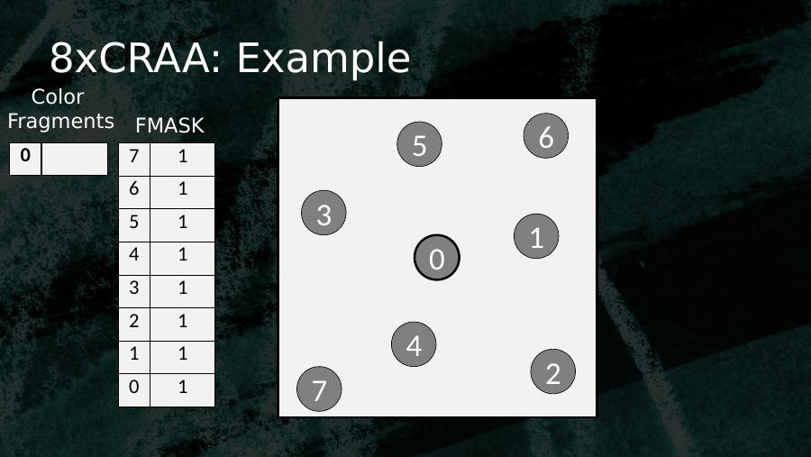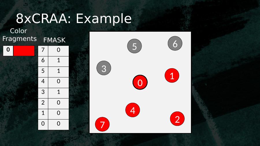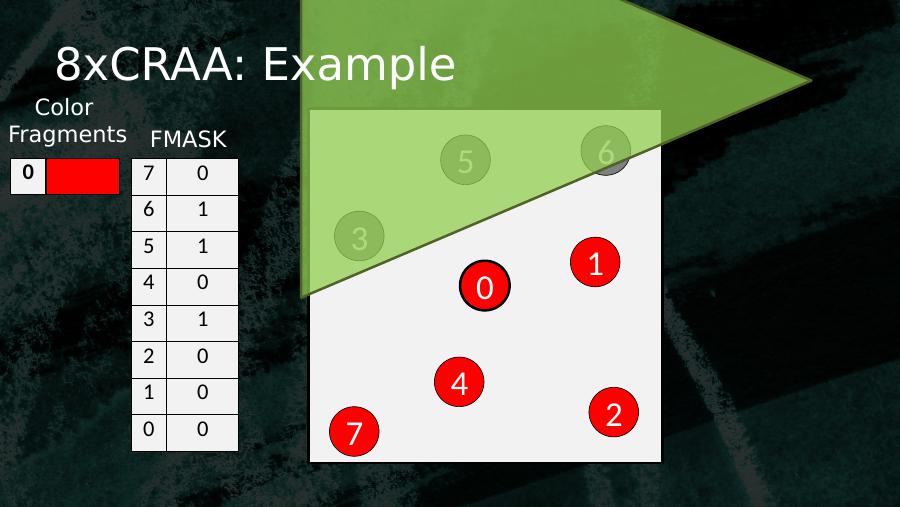 8xCRAA: Example053614270 7 16 15 14 13 12 11 10 1Color Fragments FMASK