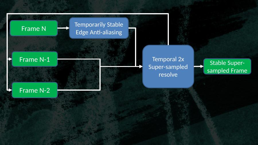 Frame NTemporarily StableEdge Anti-aliasingTemporal 2x Super-sampled resolveFrame N-1Frame N-2Stable Super-sampled Frame
