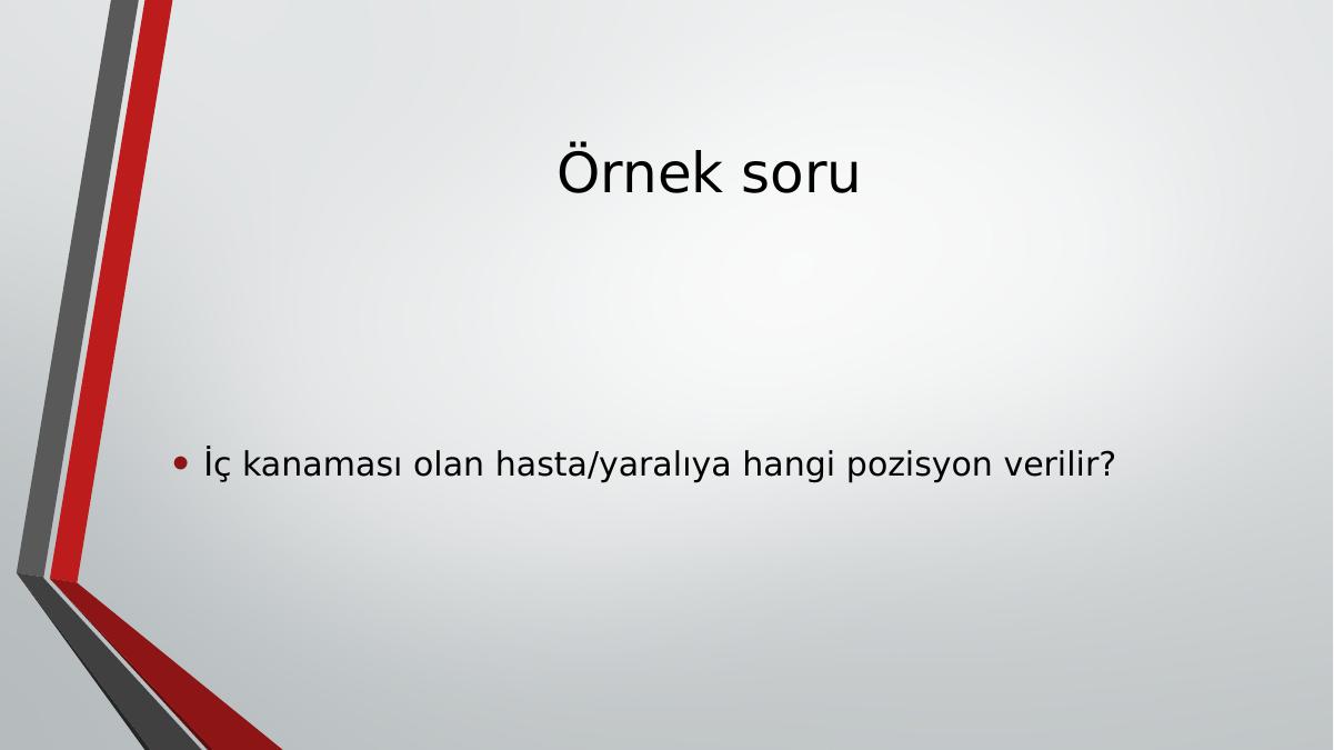 Örnek soru• İç kanaması olan hasta/yaralıya hangi pozisyon verilir?
