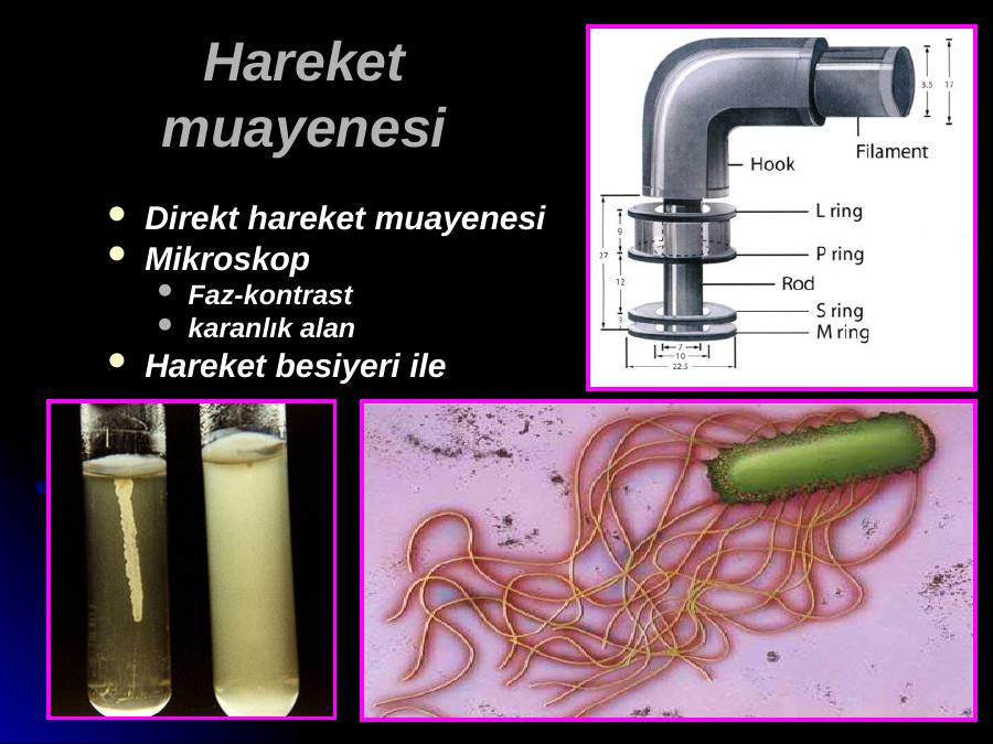Hareket muayenesi Direkt hareket muayenesi Mikroskop Faz-kontrast karanlık alan Hareket besiyeri ile