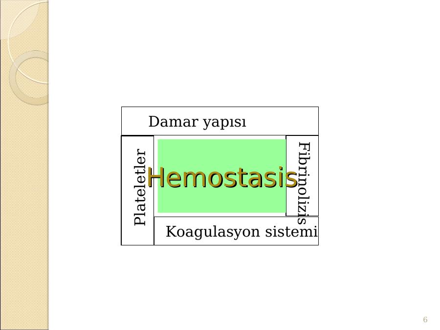 Damar yapısı P la te le tl e r Koagulasyon sistemi F ib rin o lizis Hemostasis 6