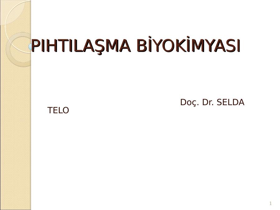 PIHTILAŞMA BİYOKİMYASI Doç. Dr. SELDA TELO 1