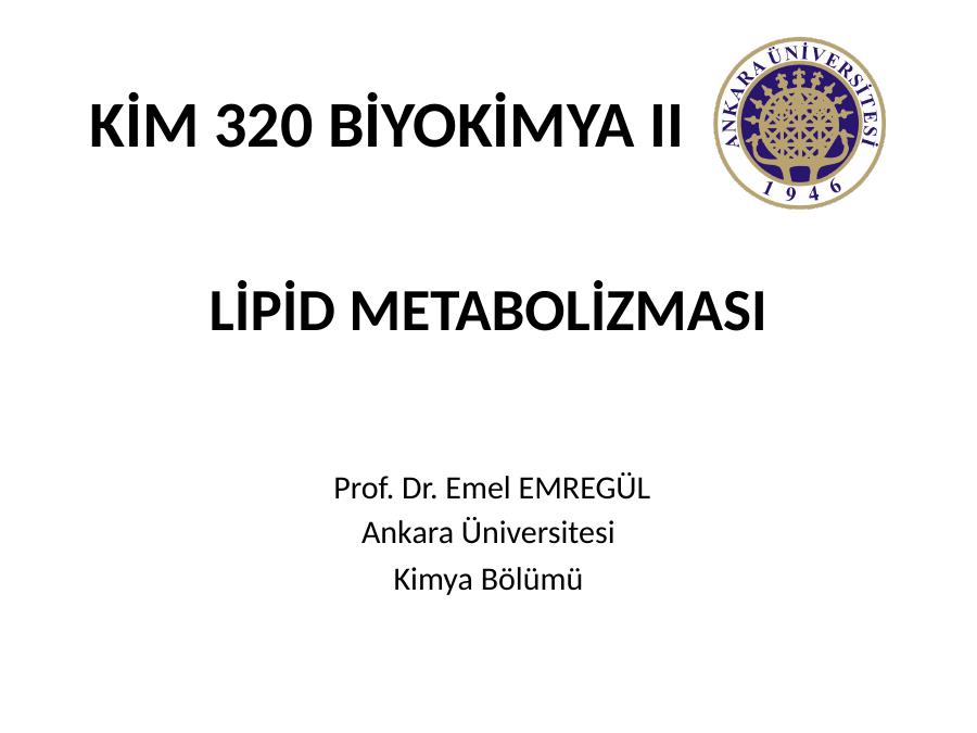 LİPİD METABOLİZMASI Prof. Dr. Emel EMREGÜLAnkara ÜniversitesiKimya BölümüKİM 320 BİYOKİMYA II